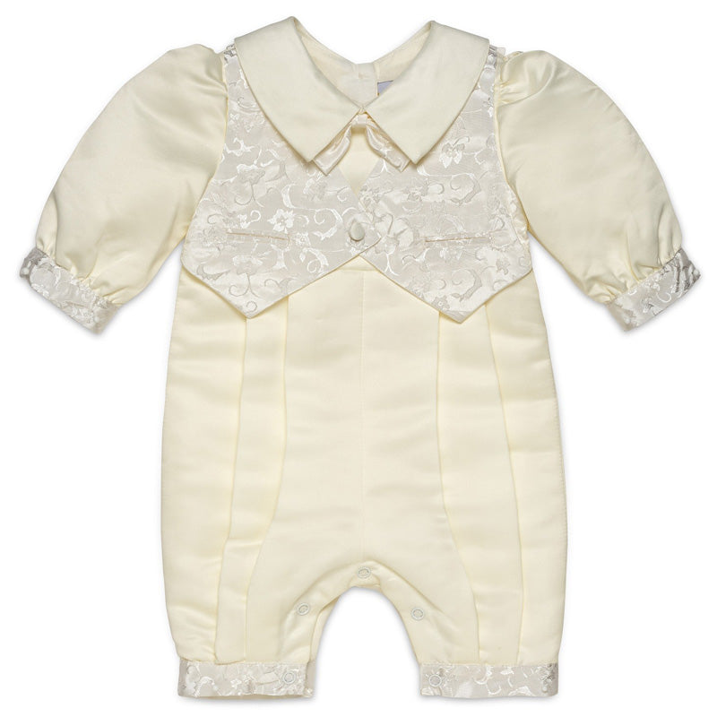 BABY BOYS SILK SATIN MOCK VEST "PRECIOUS MOMENT" ROMPER SUIT