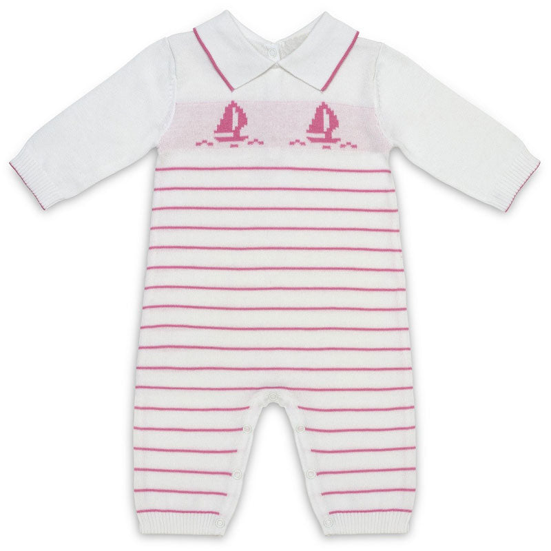 BABY GIRLS WHITE & PINK NAUTICAL KNITTED BABYGROW