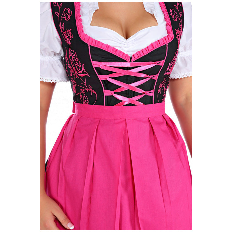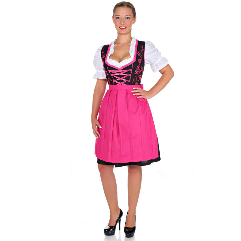 This great dirndl is a real eye-catcher and can be worn on many occasions, by all ages. For a perfect adaptation to the body, the dirndl was cut in a friendly way. Through our size chart, you can easily choose the appropriate size. With the help of a zipper, the dirndl is closed and laced with the included lace. The neckline can be adjusted with the help of a lace. The lightweight cotton fabric is pleasant on the skin and therefore offers a high wearing comfort.