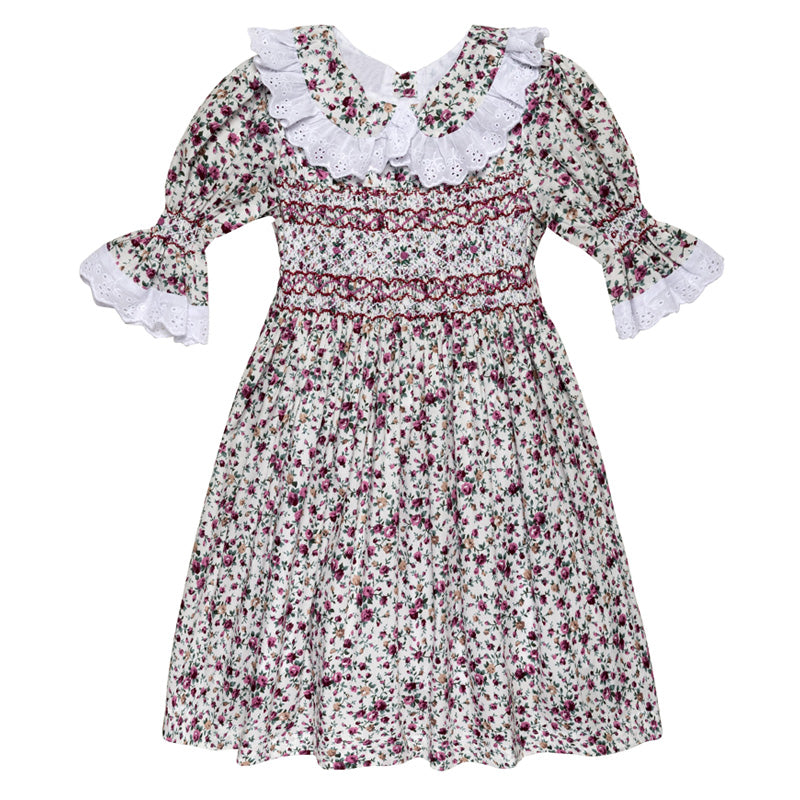 - Aurora Royal " Blossom" Hand Smocked Floral Dress
