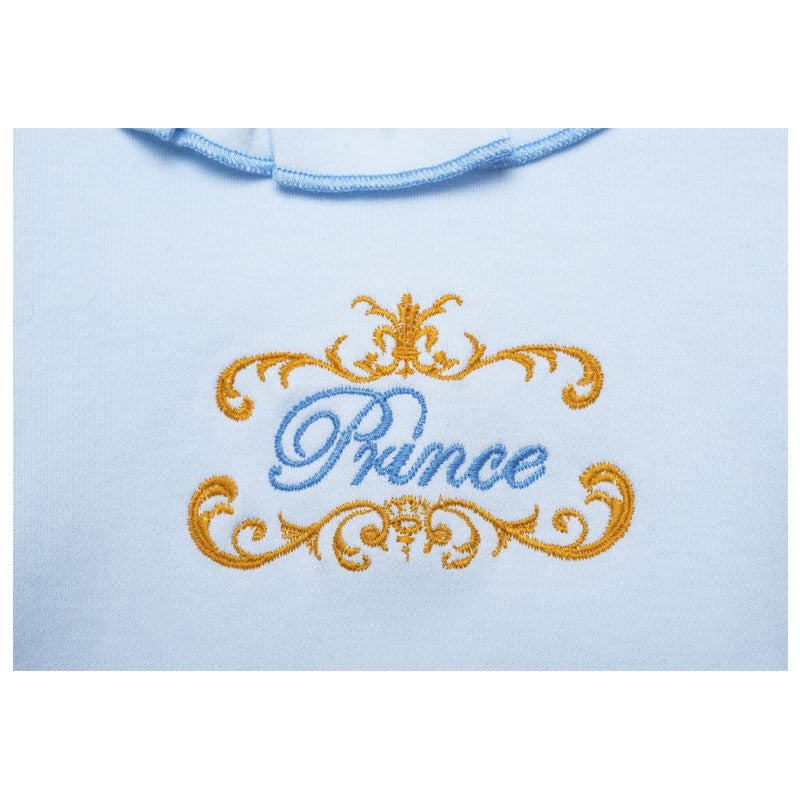 BABY BOYS "PRINCE" EMBROIDERED BODYSUITS AND MATCHING BIB SET.