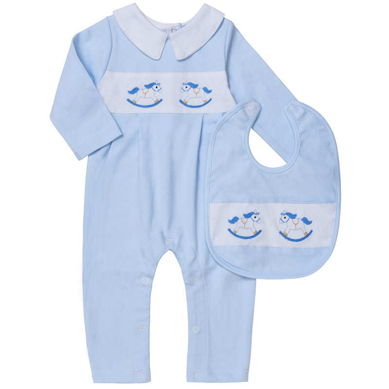 - Blue " Rocking Horse" Babygrow@Bib Set