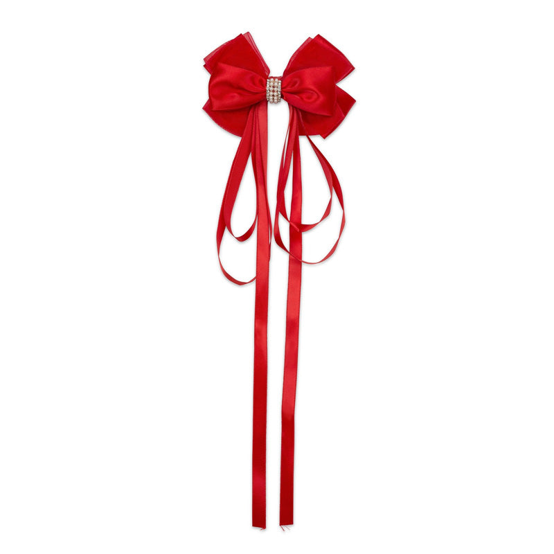 Gorgeous handmade  satin & organza bows for girls. The diamante details and long length make this the perfect bow for a special occasion. Pack of 4 satin diamante bows: blue, red, pink, fuchsia