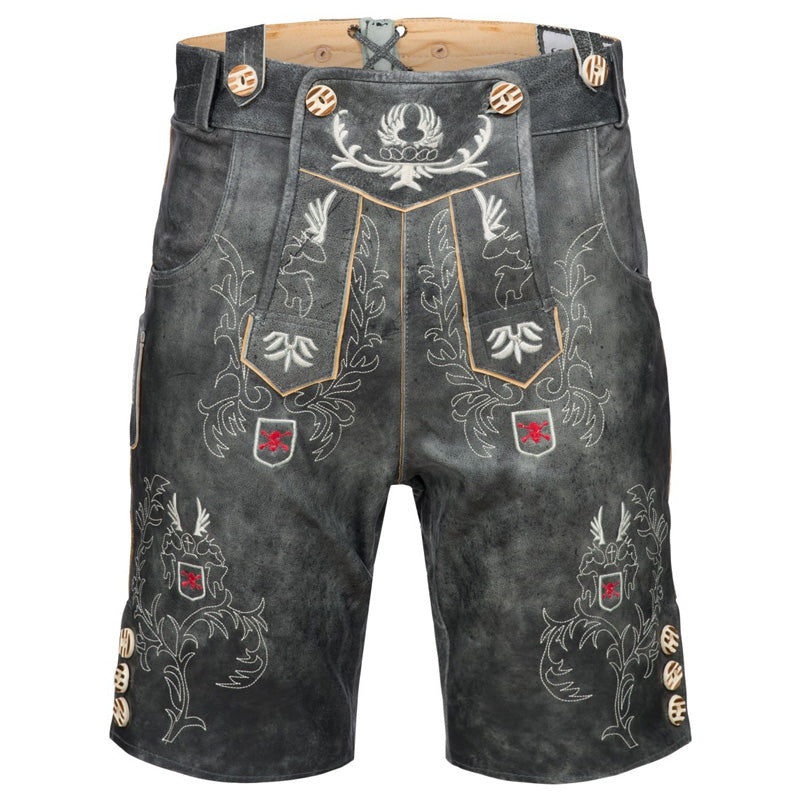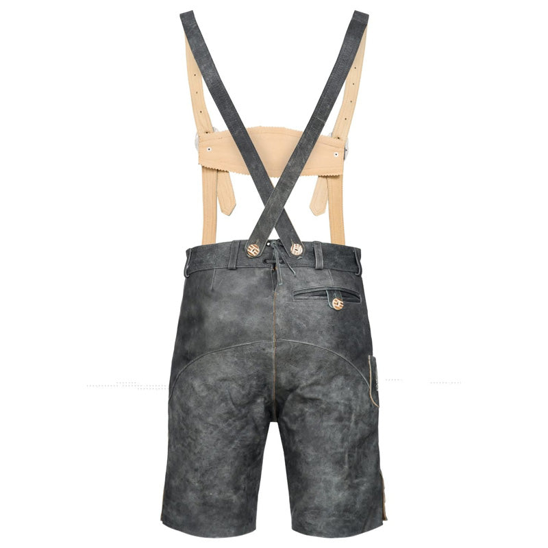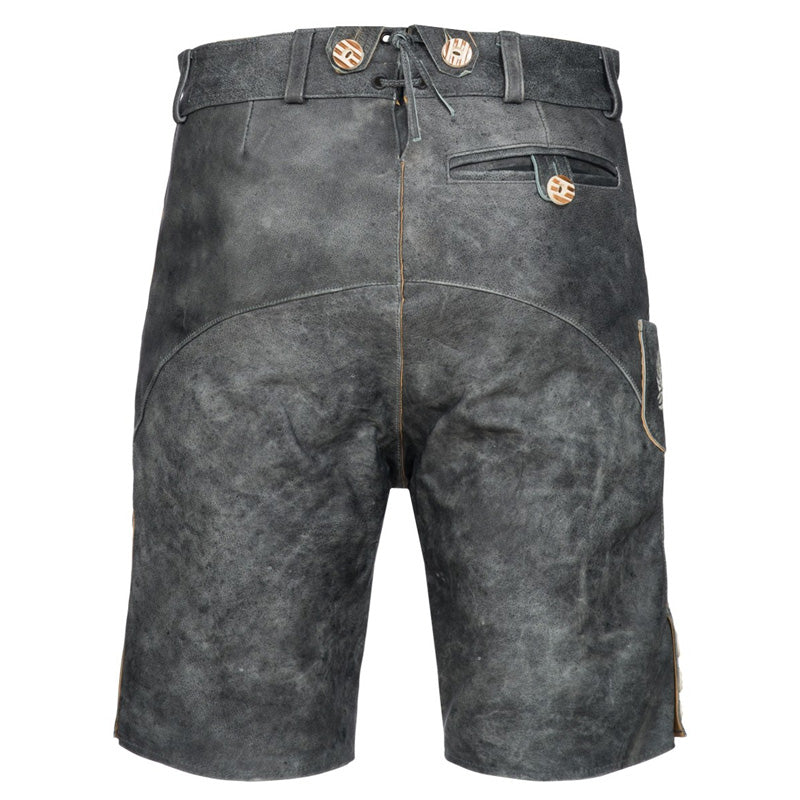 A valuable short leather trousers in rustic antique brown, which is a real eye-catcher.